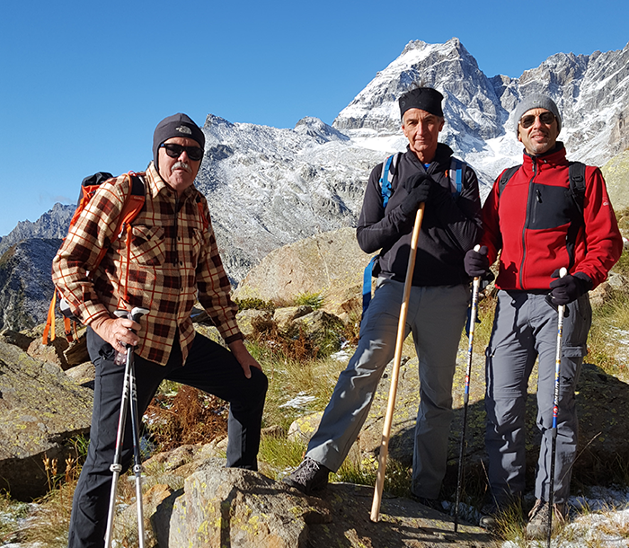 predilige l’aria più tiepida della bassa Valle Anzasca e autorizza un gruppo di incursori a sfidare i primi freddi autunnali nell’incanto dell’Alpe Devero. Il vento del nord ci regala, però, aria limpidissima e panorami superbi. Vale la pena di battere un po’ i denti per questi magnifici regali.
