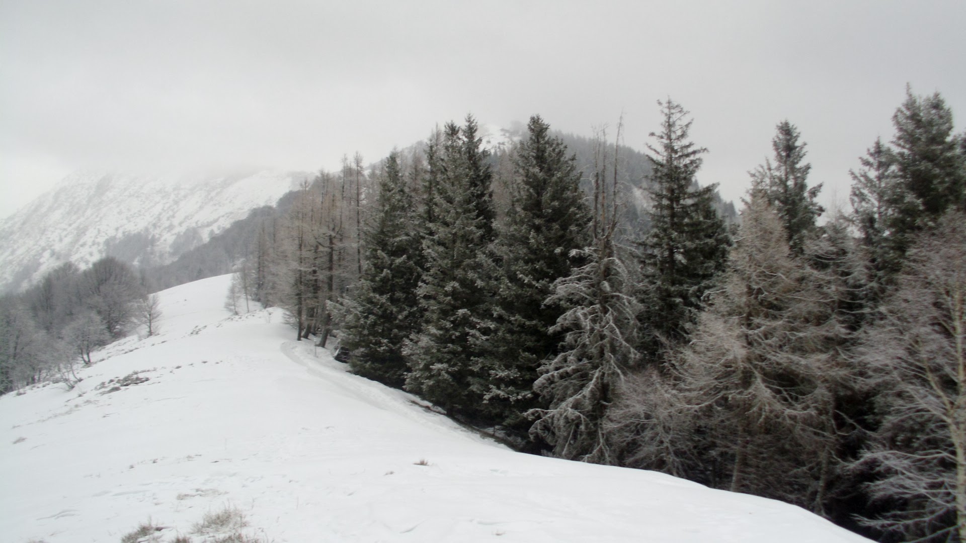 Non par vero che per tre giovedì consecutivi il tempo sia stato bello. Non ci siamo quindi illusi che il sole ci sorrida anche oggi. Ed è così che, come da previsioni, piove e nevica, ma ci vuol altro per fermarci. Ci onorano con la loro presenza il Presidente, ormai il decano del gruppo, e la giovane dottoressa (una delle poche signore del gruppo, ancora molto lontana dalla pensione). Sorseggiamo un caffè a Miazzina, sperando che, nel frattempo, la pioggia conceda una pausa. Infatti, poco dopo, si trasforma in neve, ben più gradita. Sopra l’Alpe Pala il Memoriale degli Alpini ricorda gli eroi morti in maledette guerre. Qui parcheggiamo, a quota 1000 circa. Subito giacche a vento, copri-zaino ed ombrelli. S’imbocca il bel sentiero, per evitare la strada gelata, e si raggiunge rapidamente la Cappella Fina a quota 1102. Si prosegue per l’alpe Cavallotti (1216), dove il sentiero si fa più ripido fino alla splendida dorsale, panoramica in giornate migliori, che separa la Val Pogallo dalla conca del lago Maggiore. La si percorre in direzione nord-est, raggiungendo in pochi minuti la vetta del Pizzo Pernice, 1506, (1 h 45'). Il nostro meteorologo consigliava le ciaspole e, quindi, le abbiamo lasciate sulle auto. In effetti, la nevicata ci concederà due ore di tregua, fino al rifugio, mentre la neve “vecchia” porta abbastanza bene. Dal Pizzo Pernice si perdono circa 100 metri di quota e si arriva alla bocchetta di Curgei. Si prosegue, prima in piano, poi in dolce salita, fino al rifugio e alla cappella di Pian Cavallone (1564). Un sorso di tè caldo al riparo della cappella e l'ultimo strappo ci porta in vetta al Monte Todano (1667), sempre nella nebbia, ma, almeno, non sta nevicando (1 h). Non perdiamo tempo a goderci lo splendido panorama, oggi in sciopero, e, dopo le foto di rito, ritorniamo verso la bocchetta di Curgei. Qui si devia a destra e in dieci minuti, attraversando in leggera discesa un bel bosco di faggi ben innevato (esposto a nord), si raggiunge l’alpe Curgei e l’omonimo rifugio, detto anche Bivacco del Gufo, 1350 (45'). Questo comodo rifugio, di proprietà della Pro Loco di Miazzina, è un raro esempio di come dovrebbero essere anche tutti gli altri: sempre aperto, ben tenuto e fino ad ora anche rispettato da chi frequenta queste zone. Nella vicina Confederazione sono tutti così, mentre in Italia, per colpa di una piccola minoranza di incivili, spesso non è possibile che i rifugi incustoditi restino aperti. Noi, che siamo un gruppo di veri amanti della montagna, lo lasceremo perfettamente pulito ed in ordine, contribuendo anche, com’è ovvio, alle spese di gestione. Oltre alla montagna, amiamo anche il buon cibo e gustiamo moltissimo il risotto con funghi che il nostro grande cuoco, insieme a due prestigiosi aiutanti, ci ha preparato, rinunciando a parte dell’escursione. I funghi sono procurati da un fungiat professionista del gruppo, che li ha raccolti durante le gite autunnali. Mentre pranziamo riprende a nevicare ed apprezziamo ancor di più il caldo ed il cibo. Dopo due ore di totale ed allegro relax risaliamo pigramente alla bocchetta di Curgei, sotto una tranquilla nevicata (50 m di dislivello, ma a pancia piena!), e di qui scendiamo alle auto lungo il sentiero più diretto (1 h 30’). Un po’ di neve fresca ed il ghiaccio ci inducono alla giusta attenzione. Ripartiamo verso casa, mentre la neve si trasforma in pioggia.
