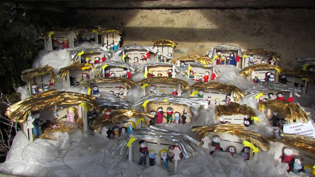 Non è la splendida giornata di un anno fa, ma i Presepi sull’Acqua di Crodo e dintorni meriterebbero una visita anche sotto la neve o durante un uragano, tanto sono belli ed espressione di una preziosa ed umile arte popolare. Arte vera e propria. E per descriverne i contenuti e le motivazioni ci vorrebbero dei libri. Il giovedì festivo ci fa muovere in un venerdì per ora umido e nuvoloso. Due fanciulle e tre signore nuove del gruppo, una delle quali con delega del marito, oggi assente, accompagnano otto pensionati. Lo staff medico è prestigioso come sempre e, perdipiù, oggi abbiamo anche il controllo di poste e telecomunicazioni del territorio. Posteggiamo in prossimità della Latteria, quota 508, e, dopo le prime foto in un’alba già avanzata, ci dirigiamo verso il centro. Imbocchiamo la strada per Mozzio e, quasi al primo tornante, saliamo a destra sul sentiero che taglia in presa diretta e ci porta a Rondola, 675. Qui apriamo per qualche minuto gli ombrelli e, poco prima di Smeglio (45’), incontriamo il primo presepe (numero 22), uno dei 62 che meriterebbero tutti una lunga ed ammirata contemplazione. Oggi riusciremo a vederne poco più della metà. Quanto e con quanta passione qui hanno lavorato! Di qui in avanti i tempi tecnici non hanno più senso perché i presepi sono tanti e meritano tutti attenzione, ma li riporterò per dovere di cronaca. Dopo 35’ di visite attente, con qualche passo in salita, siamo a Mozzio, 826, e giriamo sempre con tutta calma. Lungo strada e un brevissimo tratto di sentiero, sotto le ultime gocce di pioggia, arriviamo a Viceno, 895. Anche qui ce n’è per tutti i gusti, ma il tempo stringe e, a malincuore, dobbiamo rinunciare a salire ancora verso Foppiano, perdendo altri presepi. Mentre spunta il sole, la strada ci porta a Campieno e a Cravegna, 850 (1 h 25’), dove osserviamo altri capolavori di arte popolare. Riprendiamo la via del ritorno, scendendo a Fariolo, 780 (15’), ed ai suoi presepi, gli ultimi prima di Crodo. Passiamo da Navasco, 720 (15’), e, lungo il Sentiero della Miniera, attraversiamo su un ponte d’acciaio l’ex torrente Alfenza, passando sotto una condotta che profuma, lontano un chilometro, di centralina (mica tanto!) idroelettrica (15’). Una pista riporta a Crodo (20’), chiudendo l’anello sulla strada che scende da Mozzio, risalita poche ore fa. Recuperiamo le auto e saliamo a Croveo per il consueto ottimo pranzo dalla nostra amica Mirella, dove ci raggiunge a tavola una signora, colonna del gruppo. Il miglior digestivo è una visita al presepe di un amico Trotapian dalle parti di Premia, al di fuori di quelli di Crodo e dintorni, ma anch’esso sull’acqua: un vero capolavoro, che ha richiesto molti giorni di lavoro a tempo pieno. Questo ci dà un’idea di cosa facciano ogni anno, nel tempo di Natale, gli artisti della Valle Antigorio.