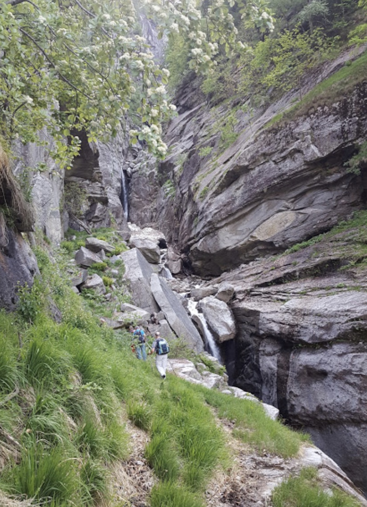 Pur vagando per i monti dell’Ossola da più di sessant’anni, ci sono ancora moltissimi luoghi a me del tutto ignoti che, soltanto grazie a degli amici preziosi, riesco a conoscere. Uno di questi è l’Alpe Groppo. Forse, quando si dice che uno è “ingroppato”, ci si riferisce a come un escursionista si può sentire salendo questi impervi sentieri. Ci troviamo a Passo, 787, dove inizia la strada per Salecchio, con più auto del necessario. E’ uno dei tanti effetti negativi del Coronavirus per chi, come noi, rispetta le regole e cerca di usare soprattutto il buonsenso. Il gruppo numeroso di pochi mesi fa si è sciolto, in attesa di poter riprendere al più presto, si spera, le belle gite collettive. Fra i pochi di oggi ci sono anche due medici reduci da tre mesi intensi di lotta in prima linea al virus maledetto. Sappiamo, quindi, cosa fare. Bella giornata con qualche nuvola e con temperatura ideale per faticare. Posteggiamo a lato della statale e attraversiamo il Toce imboccando la strada sterrata che sale alle cave, circa cento metri più in alto. Siamo sulla sinistra orografica. Teniamo la destra e arriviamo alla cava più a sud. A quota 940 troviamo il sentiero, che ci fa subito capire che oggi sarà dura: ripido, “sporco”, faticoso. Dopo un breve tratto ecco l’amara ma prevedibile sorpresa! Lavori di ampliamento della cava, cioè di costruzione di una ripida pista per i mezzi, hanno cancellato il sentiero completamente. Basterebbe poco per lasciare qualche indicazione e per agevolare gli escursionisti costretti a passare di lì. Si tratta di rimuovere il materiale pericolante e di fare in modo che chi transita resti il meno possibile nell’area di lavoro, imboccando senza problemi la prosecuzione del sentiero. Grazie alla guida indigena che ci accompagna e con questi pensieri in testa ritroviamo a fatica il sentiero G12 e ci allontaniamo ben volentieri dai luoghi del misfatto. Saliamo in un bosco misto, sporco e con tratti molto ripidi. Dopo un pezzo pianeggiante attraversiamo un torrentello che precipita in una forra profonda. Ritroviamo un bosco più bello e pulito, di faggi, e, dopo due baite isolate, arriviamo all’Alpe Pianezza, 1434, in meno di due ore. L’ambiente è sempre più bello, ma il percorso resta impegnativo. Sempre in direzione sud – est usciamo dal faggeto, attraversiamo il rio Pe di Pilone al di sotto della sua bellissima cascata e affrontiamo l’ultimo tratto, sempre più scosceso e “sporco”, prestando attenzione alla segnaletica un po’ rada. Per completare l’opera incontriamo dei nevaietti ben compatti, ma ripidi e con subdole buche in agguato. A duemila il terreno diventa pulito, l’ambiente bellissimo e, dopo 3 ore e mezza dalla partenza, brevissime pause escluse, siamo all’Alpe Groppo, 2017. Una magnifica dorsale con un alto ometto di pietra si protende fra due abissi in direzione della Valle Antigorio. C’è anche una baita adibita a rifugio dai cacciatori di Premia. Qui pranziamo mentre si alza un gelido venticello settentrionale che ci ricorda che questa è montagna vera e severa quanto bella. La discesa, lungo lo stesso percorso, dura poco meno della salita a testimoniare quanto il percorso sia “serio”. Uno dei ragazzi, tonico e molto elastico, trova anche il tempo di eseguire un elegante tuffo senza conseguenze, su uno dei nevai prima descritti. Pare si stia già allenando per Tokio 2021. Con attenzione riattraversiamo la cava che proprio non ci gradisce e, con vero piacere, recuperiamo le auto. La grande guida odierna, oltre a non presentarci una congrua parcella, ci offre una splendida birra nel suo giardino incantato.
