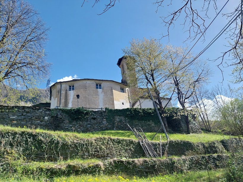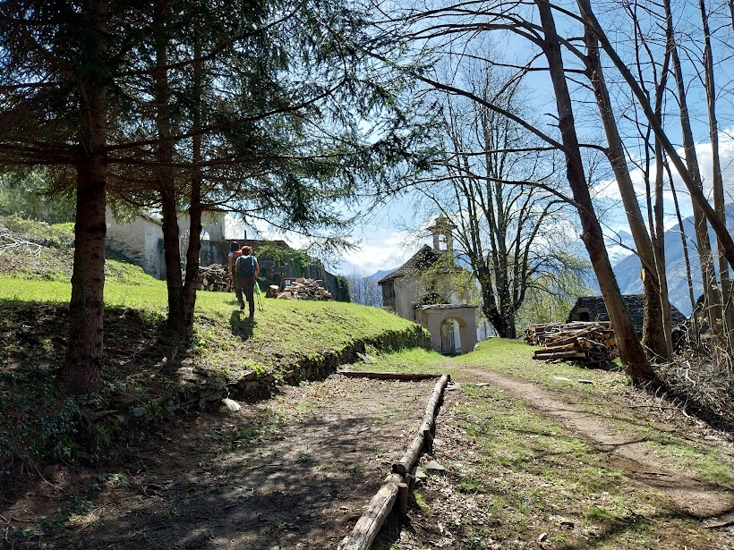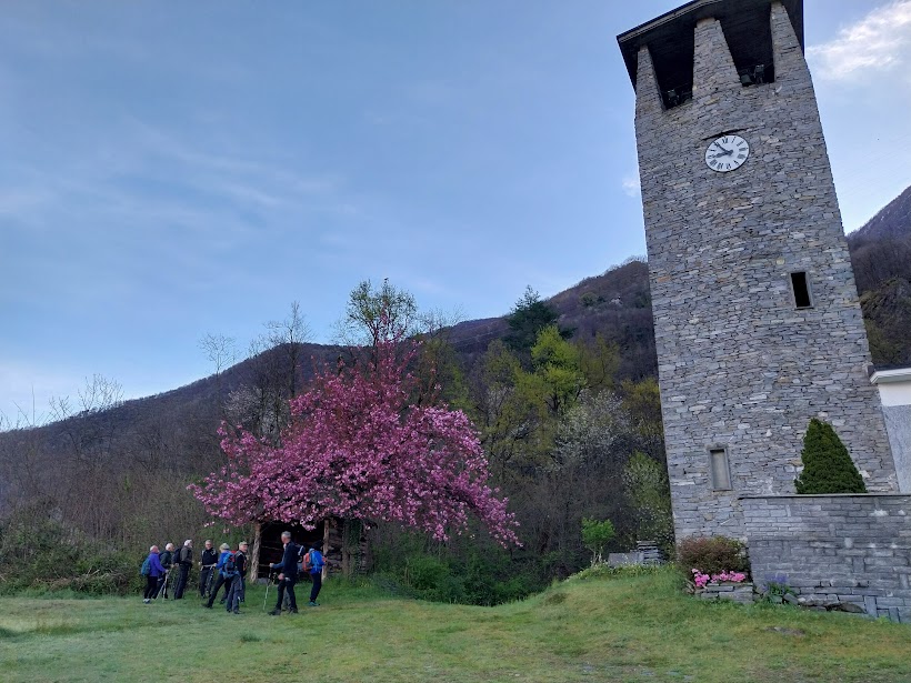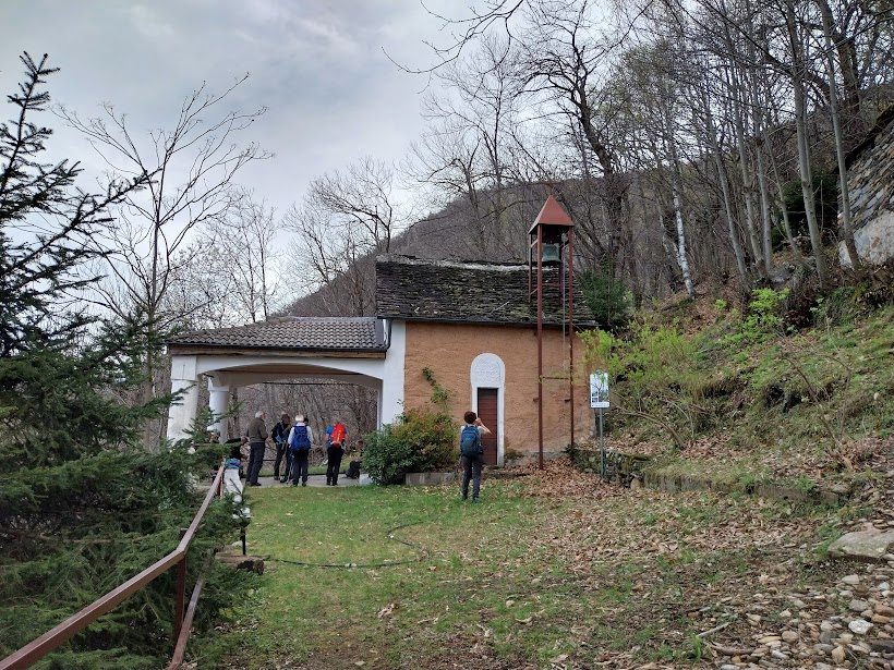 Riprendiamo senza fretta la discesa seguendo l’indicazione per l’Alpe La Selva, dove incontro vecchie conoscenze, e Cosasca, dove chiudiamo il primo anello (mezz’ora). Lungo una bella mulattiera e sentiero scendiamo alla Chiesa di San Lorenzo al Pozzo, 397, dove ci concediamo un’altra lunga pausa. La strada, a tratti asfaltata, e il sentiero ben raccordato con questa ci riportano al piano. Viriamo a nord (destra) e torniamo alle auto in orario virtuoso rispetto ai nostri standard (mezz’ora da Cosasca). Chiudiamo così il secondo anello. A casa troveranno subito qualcosa da fare per nonne e nonni oggi in libera uscita.