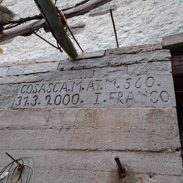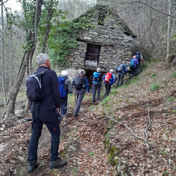 Questa squadra di valore si occupa di due anziani e di un giovane runner in convalescenza. In undici, quindi, distribuiti su quattro auto per motivi logistici, raggiungiamo abbastanza facilmente i parcheggi della scuola e della chiesa di Cosa, 250. E già qui la prima lezione di storia e geografia: molti chiamano erroneamente Cosasca questa frazione di Trontano “al piano”, mentre l'antico paese di Cosasca si trova “al monte”, trecento metri più in alto, ed è la prima meta di oggi.