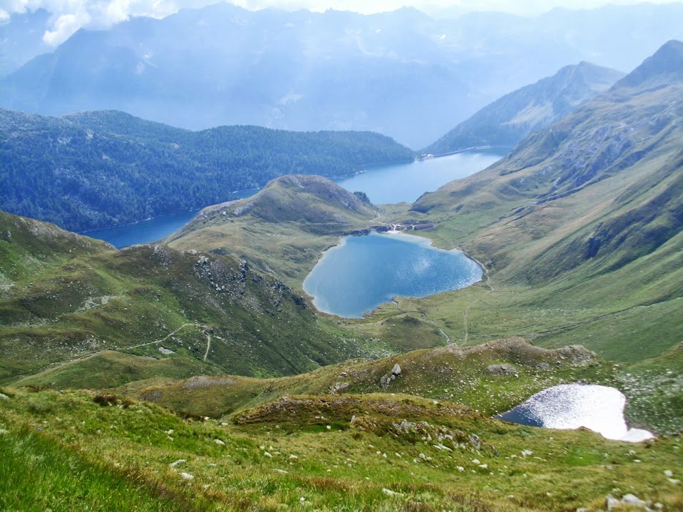 Questo incredibile punto panoramico dà probabilmente il nome al Giro delle Meraviglie. Guardando verso sud si vedono d'infilata, dall'alto e su livelli diversi, i due laghetti di Taneda, il lago di Tom ed il maestoso lago del Ritòm. Paesaggio fiabesco! Costeggiando Taneda, 2304, e Tom, 2022, fra splendidi pascoli alpini si scende al Ritòm, chiudendo l'anello. Dopo quasi un'ora e tre quarti arriviamo in buon anticipo per scendere con la funicolare delle 17.