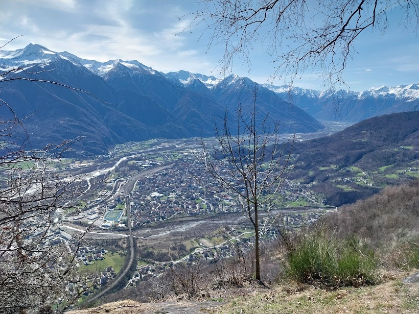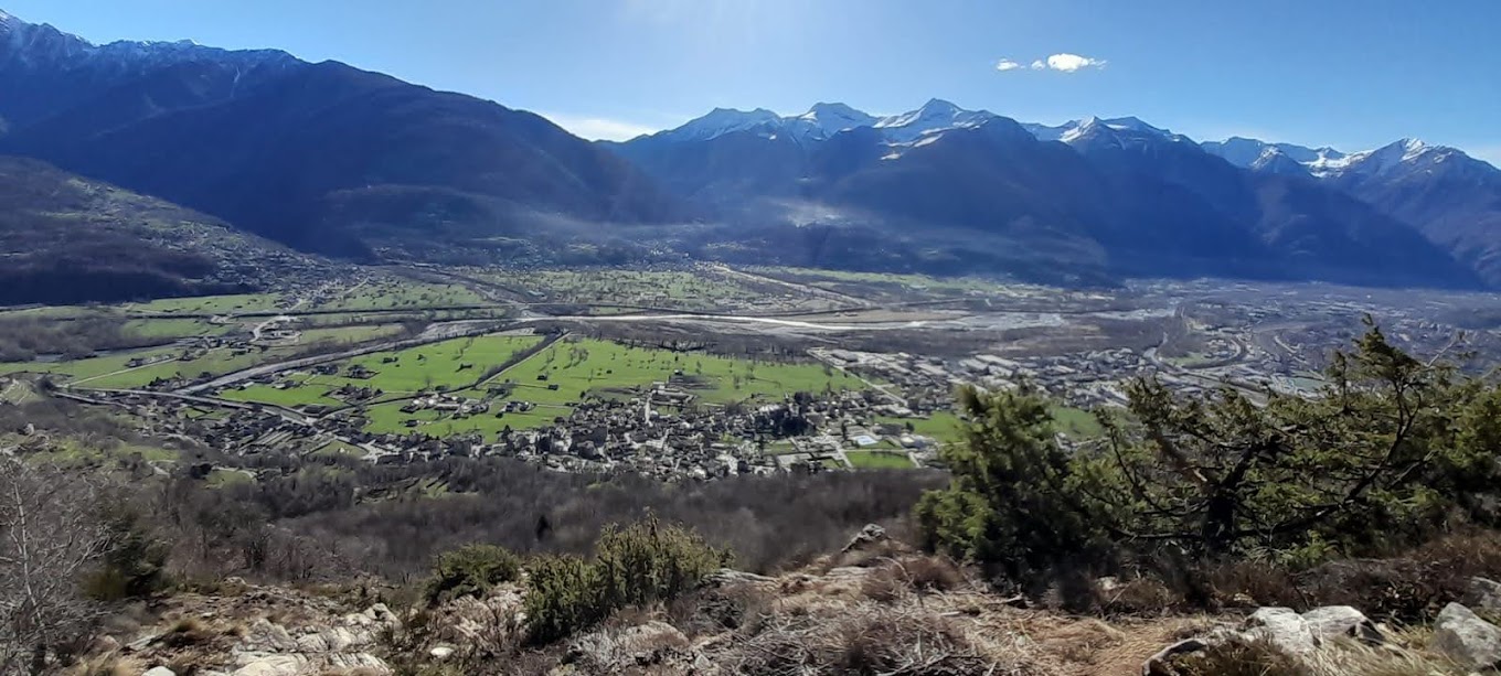 Non solo questa, ma tutte le strade montane “sbarrate”, ovviamente. Parcheggiamo e risaliamo sull’asfalto per pochi minuti fino ad incontrare sulla sinistra, al disotto della strada, il sentiero per l’Alpe Termine. Breve pausa all’Alpe Curtavello, 877, immersa nel bosco, dove si trovano baite in ottimo stato insieme ad altre diroccate. Dopo un’ora di cammino siamo all’Alpe Termine, 1065, splendido balcone panoramico su Domodossola e sulla piana dell’Ossola. Durante la pausa colazione riceviamo la telefonata da Palermo di un anziano ex alpinista che ormai preferisce le crociere alle nostre montagne.