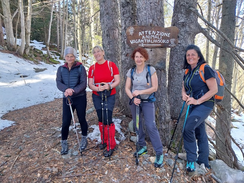 CREVOLADOSSOLA- 06-04-2025-- Torniamo ai giorni nostri. Le stesse gite di pochi o meglio tanti anni fa sembrano più lunghe e impegnative. In questa escursione, abbastanza avventurosa e faticosa, essendo la prima “seria” del 2025, si percorrono sentieri che in estate, con la vegetazione rigogliosa, sarebbero quasi impraticabili. Già il panorama della piana ossolana dall’Alpe Termine varrebbe la discreta fatica, abbinata oggi al prima caldo, ma più si sale più lo spettacolo migliora, fino a culminare nel meraviglioso pianoro, oggi innevato, dell’Alpe Fuori.