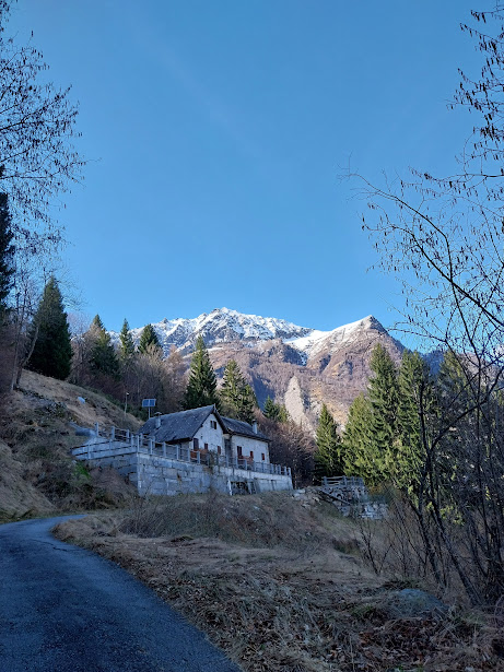La giornata è splendida. Il referendum fra neve e erba non è neppure iniziato, non c’è storia, la neve ha poco successo. E’ così che quattro anziani, assistiti da un medico e quattro badanti, si trovano per un caffè ai trecento metri di Preglia anziché ai duemila del Passo del Sempione, per poter restare sotto la quota della neve. Ma in questo periodo non è facile. In auto saliamo alla frazione Canei e proseguiamo lungo la strada per l’Alpe Andromia, fino alla sbarra, a quota seicento circa, che impedisce ai contribuenti di serie B di fare uso di una strada costruita anche con il loro denaro. E non mi si parli di “sicurezza” visto che in alcune occasioni, forse per “fare cassa”, la strada viene aperta a tutti.