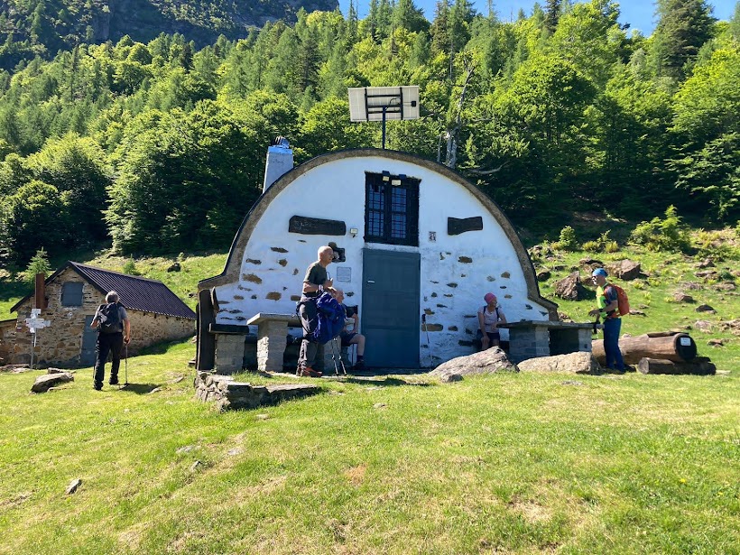 Ad occidente splendono i Quattromila. In tre quarti d’ora ridiscendiamo a L’Alpino per pranzare sui comodi tavoli. Con tutta calma, in un’ora e mezza, torniamo alle auto lungo il percorso di salita. Al bar di Malesco chiudiamo in bellezza la giornata.