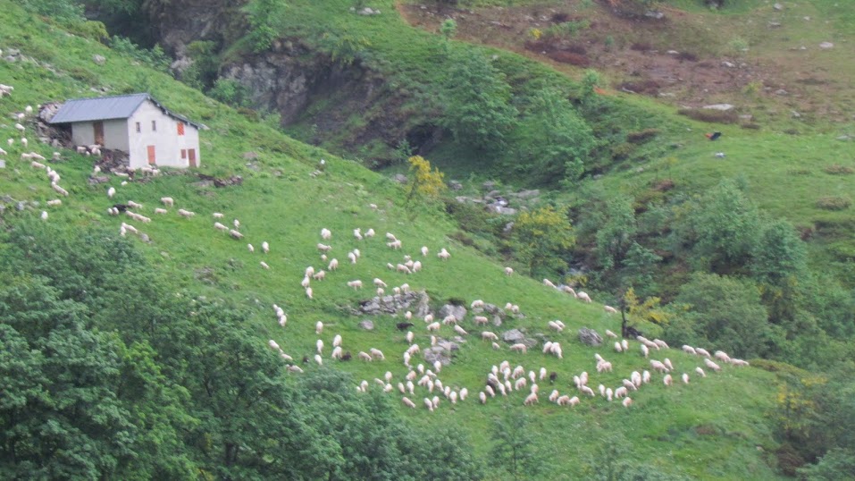 Quasi tutti gli ombrelli restano al campo base, nonostante la “lavata” della scorsa settimana. Dal parcheggio ad ingresso paese scendiamo ad attraversare il torrente e imbocchiamo verso sud est una traccia di pista gippabile, seguita da un bel sentiero, che ci conduce in meno di tre quarti d’ora all'Alpe Pennino Grande, 1498. Due foto e si vira decisamente a sud verso l'Alpe La Balma, 1671, che raggiungiamo in dolce salita. E' piacevole incontrare bovini, ovini ed equini, oltre a qualche ungulato in lontananza.