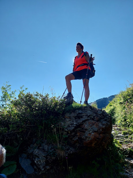 In dolcissima salita, diretti a sud, raggiungiamo l'Alpe Loana, 1327, e passiamo sulla sinistra orografica del torrente fantasma a Le Fornaci, 1350. La mulattiera M14 inizia a salire e io seguo a debita distanza il folto gruppetto che inserisce subito le marce alte considerandosi, per ora, in una tappa di “avvicinamento”. Lo zaino è pesante e fa pure caldo.